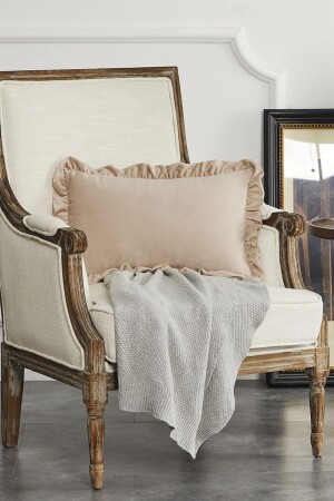 MNZ-Beige Country Frilly مستطيل رمي غطاء وسادة النسخة الناعمة العمر السكندنافي - بوهيمية - عيد الميلاد