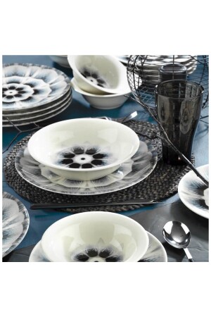 مجموعة العشاء التي تتكون من 48 قطعة تتكون من 12 طبقًا، 12 طبقًا عميقًا، 12 طبقًا كعكة و 12 صحنًا. مع منتجات "سلسل