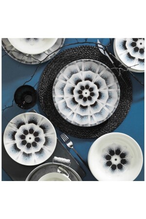 (MNZ-Matte) عشاء أسود / فطور مجموعة 30 قطعة لـ 6 أشخاص dmtaks202330