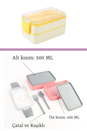 تحتوي القسم السفلي على طاقة 500 مل و القسم الأعلى على طاقة 400 مل. هناك ملعقة و شوكة في القسم الأعلى. وبالتالي، كل الأجزاء التي تحتاج إلي