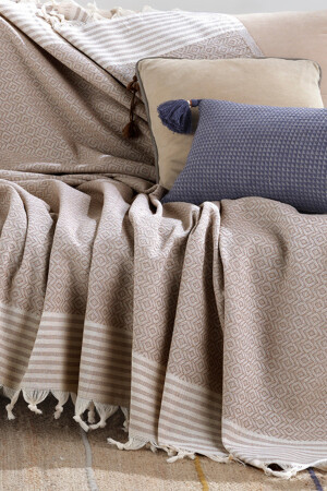 MNZ-Bergama Beige Buldan Sofa Cover 170 X 210 سم صوفة رمي صوفة صوفة سرير غطاء القطن رمي Mk-10002