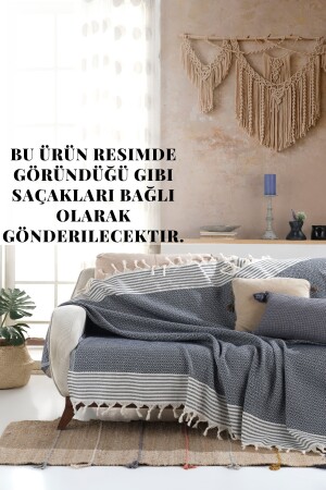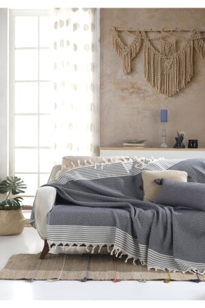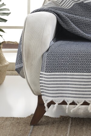 MNZ-Bergama Indigo Buldan Sofa Cover 170 X 210 سم صوفا رمي صوفا صوفا سرير غطاء القطن رمي Mk-10002