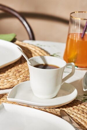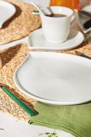 MNZ-Emsan Bianca Leaf 32 قطعة إفطار/خدمة مجموعة لـ 6 أشخاص المواد البورتسلين مجموعة تتضمن 6 لوحات خدمة 25 سم 6 كوبات الش