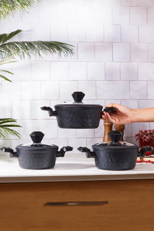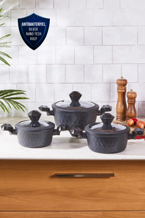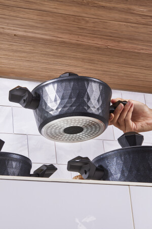 م.ن.ز-كاراكا بييو دياموند مضاد للبكتيريا المقبض إندكشن على أساس 6 قطع مجموعة أدوات الطبخ المجموعة محتوى 16 سم صوس