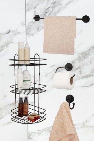 MNZ-Black أربعة أضعاف حمام الاستحمام رف / حامل منشفة طويلة / ربطة ثوب / حمام المرحاض المتحف