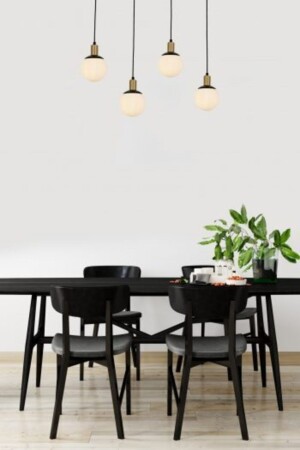 Pare Model Modern Spor Siyah 4'lu Glop Füme Camlı Avize