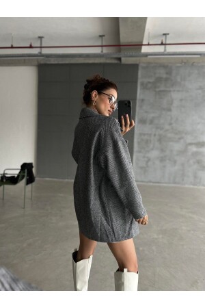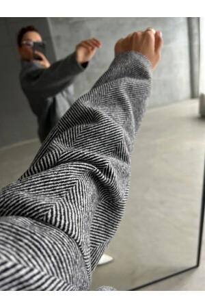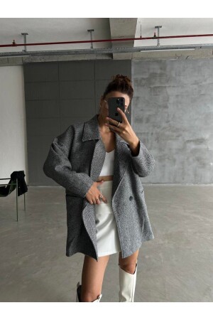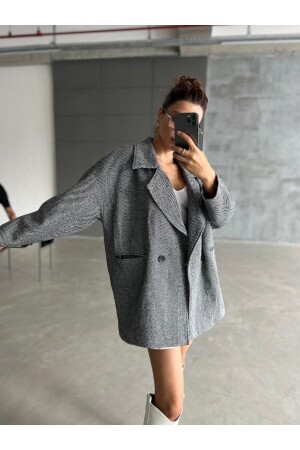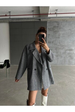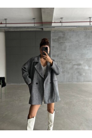 Gri Balık Sırtı Oversize Kaşe Kaban