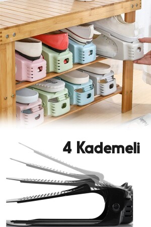 منظمة راك الأحذية من نوعية البلاستيك 4 مستوى قابلة للتعديل في اللون الأسود والأبيض محتويات الحزمة: 10 قطع قابلة للتثبيت ر