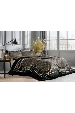 MNZ-Black Art Deco مضاعفة الحياة الناعمة ساتن غطاء غطاء مجموعة TYC00550015490