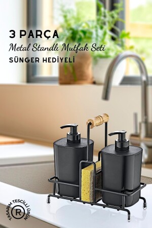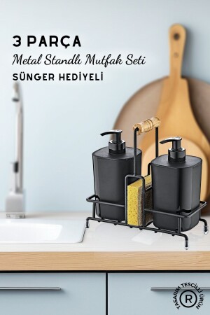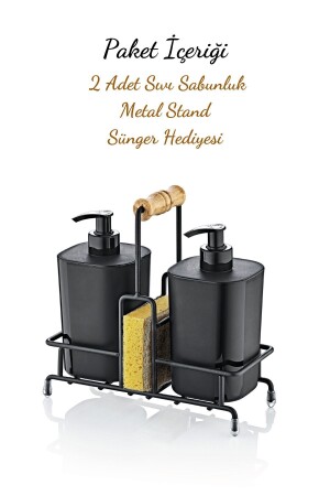 MNZ-Black Begonia غسل الأطباق مضغوطة والصابون السائل المزود المطبخ مع منصة معدنية - هدية إسفنج