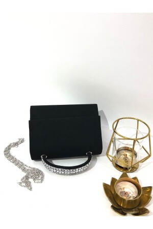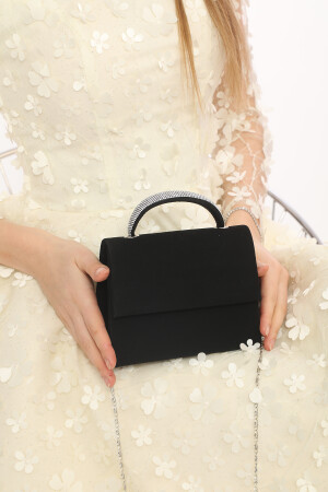 Siyah Kadın Taşlı Ve Sade Özel Zincir Ve Kolçaklı Abiye Çanta Bg1175-310-0011
