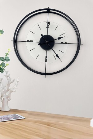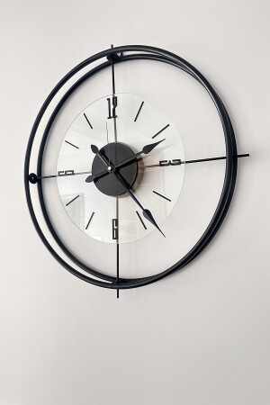 النظيف النقي من الزجاج الاسكندنافي 60 سم عرض الساعات الحدائية الحديثة: 60 سم قطر ملفات معدنية سوداء مع حلقين هيكلة. المادة: