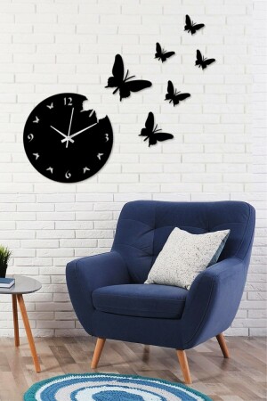 MNZ-Black Flying Butterflies ساعة الجدار الخشبية، ساعة الجدار الفراشة 7 قطع OADS-UCAN-KELEBEK-101