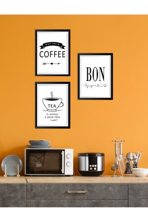 MNZ-Black Frame Look Coffee Bon Tea ديكورات الجدار المطبخ مفهوم الطاولة لقبينة القهوة 15x20 مجموعة