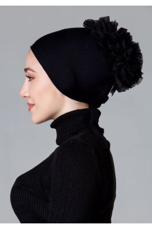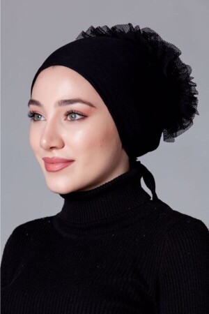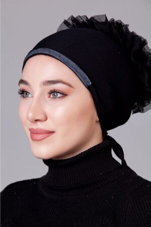 Fırfırlı Bone Siyah - Özel Tasarım- Yeni Model Tesettür Giyim
