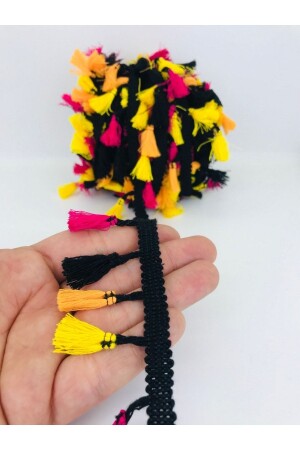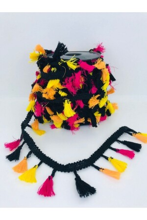MNZ-Black Orange Yellow Cotton Fringe Tassel 1 م عرض 4 سم