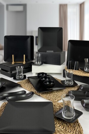 MNZ-6 أسود مات 25 سم مربع طائفة خدمة 6 أكواب الشاي زجاجية 6 طائفة الشاي أسود مات 4 قارب أسود مات مستطيل 3 صحون سحابة أس