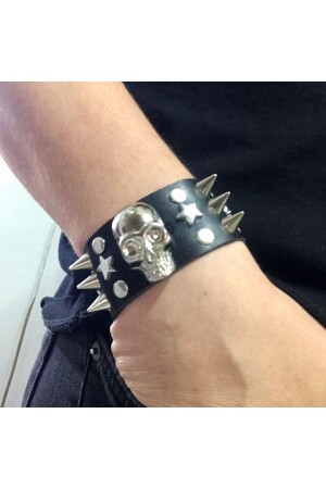 MNZ-Black Staple التفاصيل العصا الجمجمة الجلد سوار الحجم: الحجم الواحد جنس: يونيسكس مجموعة العمر: لون الشباب: أسود