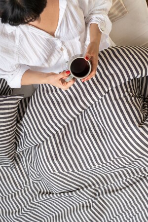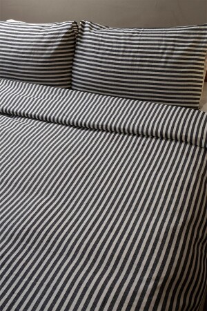 MNZ-Black Stripped Linen غطاء ووسادة مزدوج 200x220 سم KTNNVRS