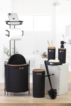 5 Parça Lenox Akrilik Bambu Banyo Seti Siyah
