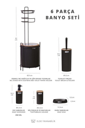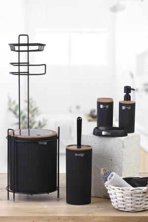 5 Parça Lucas Akrilik Bambu Banyo Seti Siyah