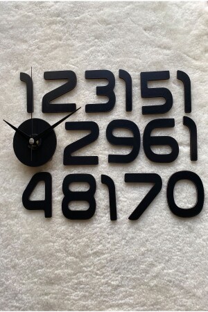 MNZ-Black Wooden 3D Decorative رقم منتظم ساعة الجدار الجزئية - الأسود infigo-romarakamlı01