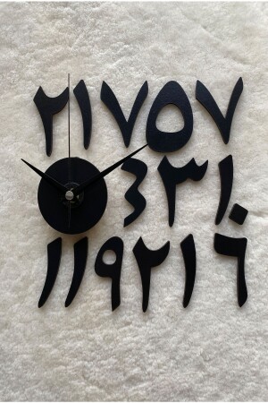 MNZ-Black Wooden 3D Decorative Clock جزئي الجدار مع الأرقام العربية - Black infigo-romarakamlı01