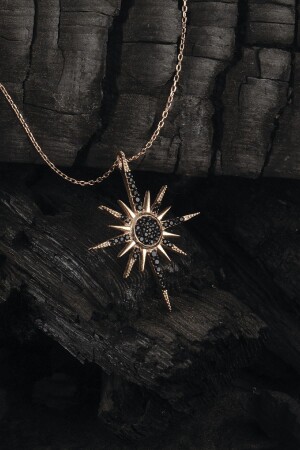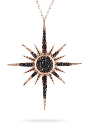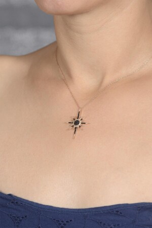 MNZ-Black Zircon Stone Polar Star Model نسائي 925 سبرينغ فضية عنق Gklktpyldzi-alt GKLKTPYLDZI