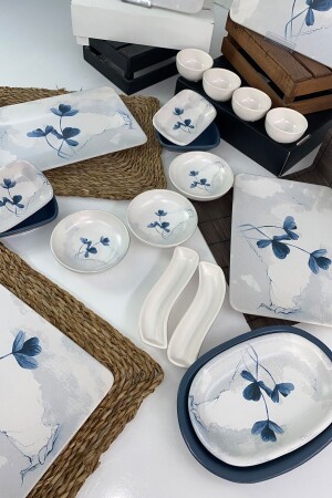 Çiğdem Blue Model 12 Kişilik 21 Parça Kahvaltı Takımı Kahvaltı Seti[ Mavi 12]