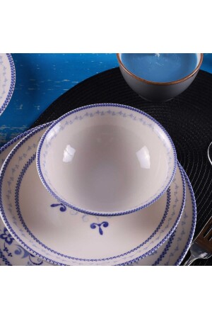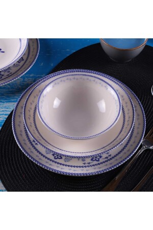 MNZ-Blue Blanc 24 قطعة عشاء يومي مجموعة ل 6 أشخاص كريم زرقاء كلاسيكي Db0775 420