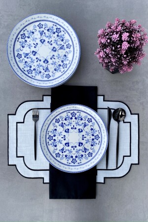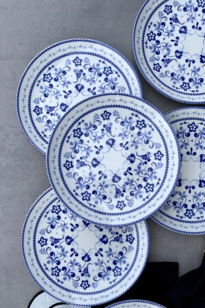 MNZ-Blue Blanc 25 سم مجموعة من 6 لوحات خادم من البورتسلان الكلاسيكي الأزرق لـ 6 أشخاص PDTLBLBLNC123