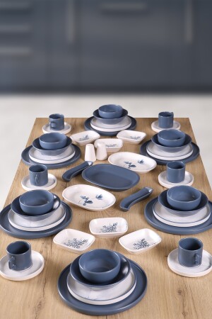 Çiğdem Blue Model 12 Kişilik 21 Parça Kahvaltı Takımı Kahvaltı Seti[ Mavi 12]
