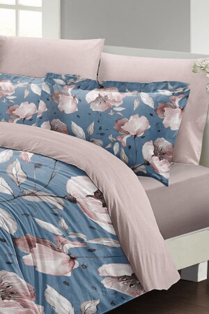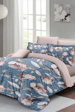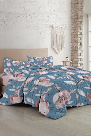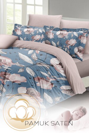 MNZ-MonoHome Blue Rose Double Duvet Cover Set 3D Cotton Satin A Pleasant Touch A Peaceful Sleep 200 سم × 220 سم - خاصة نسيج القطن ساتين - الطباعة الرقمية