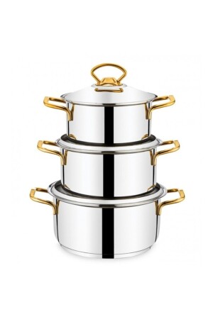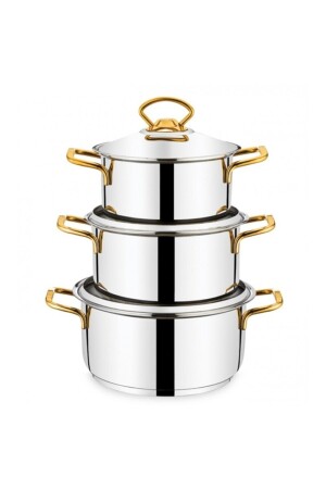 MNZ-Boğaziçi كاسيرول مجموعة ذهبية من الفولاذ أدوات الطبخ مجموعة 6 قطع Boğaziçi 692
