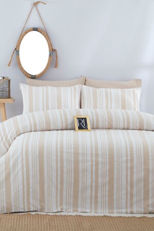 MNZ-Bohemian Beige Striped Double Duvet Cover Set مجموعة بوهيمية مزدوجة