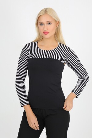 ملابس داخلية حجاب نسائية من طراز MNZ-Moda Canel باليرونة ذات الأكمام الطويلة ذات الشريط الأسود والأبيض هو مزيج من القطن والبوليستر