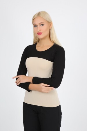 ملابس داخلية حجاب نسائية من طراز MNZ-Moda Canel باليرونة ذات الأكمام الطويلة السوداء مزيج من القطن والبوليستر والإلاستان.