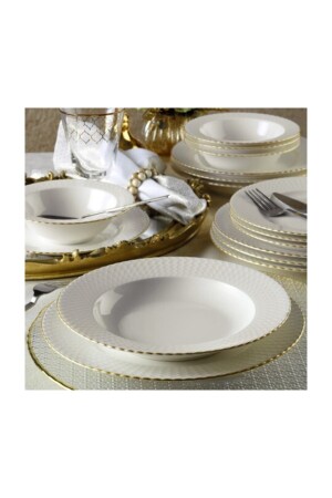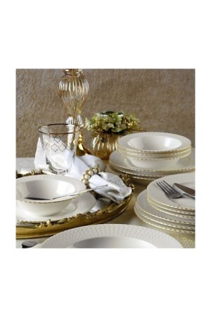 MNZ-Bone Iron 24 Piece Dinnerware Set مقطوعة الذهب الشريحة BNIRN24Y2520
