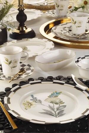 64 Parça 12 Kişilik Platin Modern Krem Kahvaltı Takımı