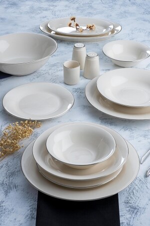مجموعة عشاء من 60 قطعة من طراز MNZ-Bria لـ 12 شخص - محتوى المنتج الفضي: 12 طبق 12 طبق كعكة 12 طبق عميق 12 صحن 1 وعاء كبير 1