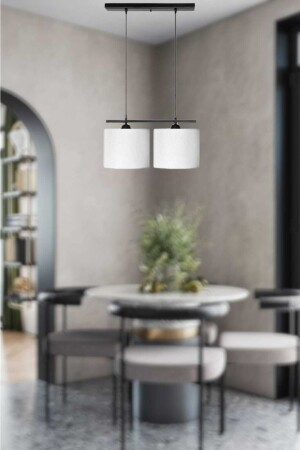 MNZ-Bruno 2-piece Black Modern Chandelier (مع ظلّ الضوء الأبيض) BRNO-ABJ-BYZ-02