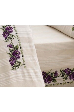 MNZ-Buldan Cross Stitch Embroidered Double Duvet Cover Set-lilac EAKSBULBC377MT