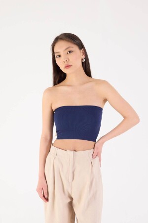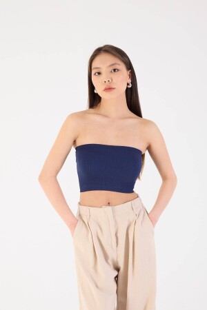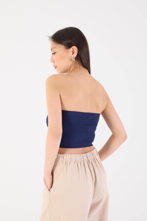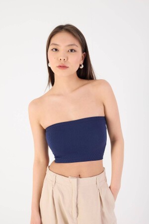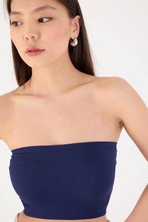 Siyah Fitilli Örme Kaşkorse Trend Straplez Crop Büstiyer