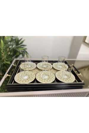 Paslanmaz Çelik Kare 6lı Aksesuarsız Çay Kahve Sunum Tepsisi