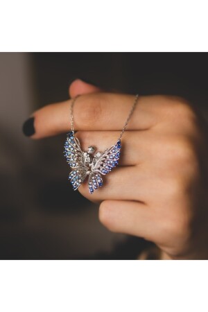 "MNZ-Butterfly" Dream Aqua Transitional Silver Necklace KL1472"