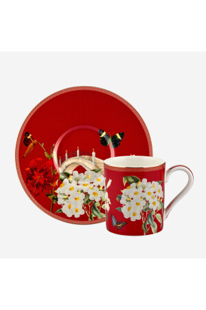 MNZ-Butterfly Walley Red White Porcelain Coffee Cup Set 90 مل CAPBW1ECRM6