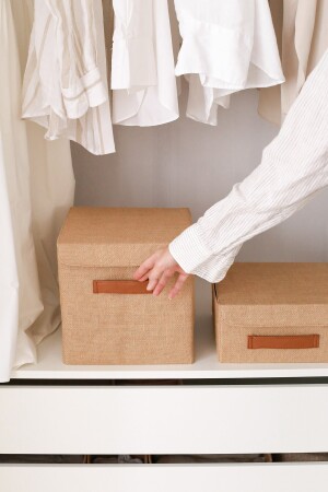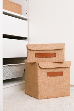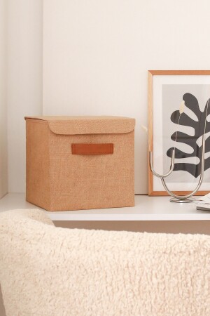 Bej Kapaklı Dolap İçi Çamaşır Oyuncak Düzenleyici Katlanır Saklama Kutusu Hurç 48x40x30