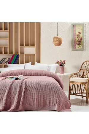 Krem Çift Kişilik Fransız Güpürlü Çeyizlik Battaniye Takımı