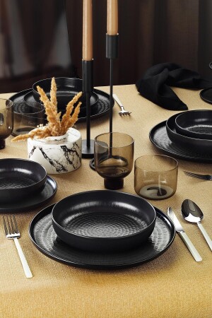 (MNZ-Siera Matte Black Square Dinner Set) 24 قطعة لـ 6 أشخاص (TY032024F956A0000000AOV100)
