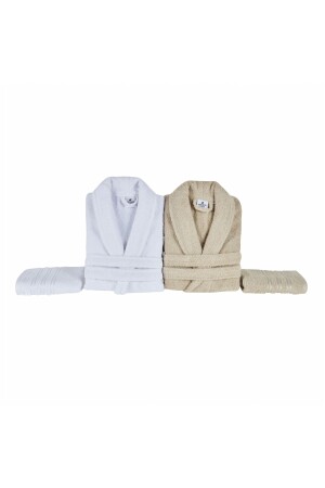 Kadın Erkek Bej Aile Bornoz Seti